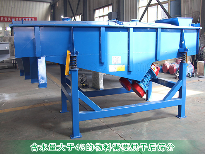 直線振動(dòng)篩在篩分含水量高或者粘性高的物料時(shí),需要減少物料的含水量后才能篩分使用,因?yàn)楹扛叩奈锪细哂姓吵硇停诤Y分過(guò)程中容易吸附在篩網(wǎng)上,造成篩網(wǎng)堵塞,對(duì)于含水量大于4%的物料需要烘干后篩分,含水量大于20%時(shí)需要采用濕式篩分。
