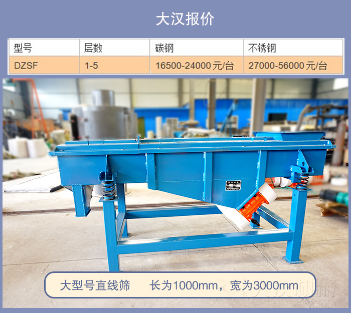 以下是大漢直線篩最新報價單,僅供用用戶參考(主要由于材質、層數等影響)