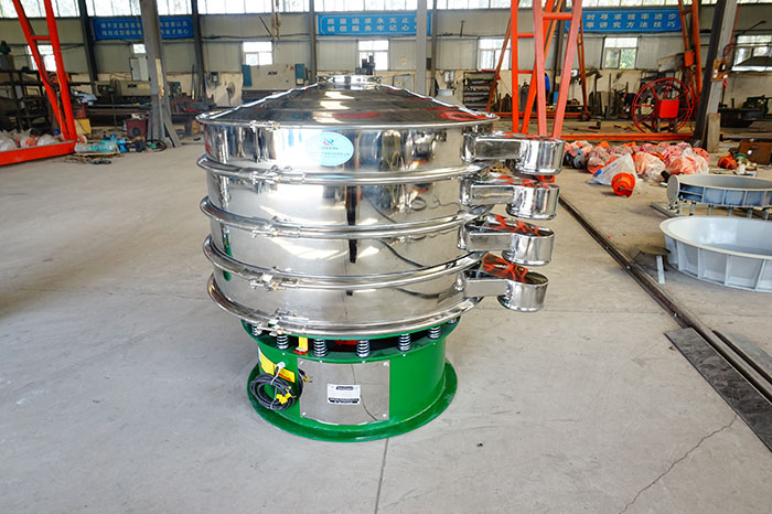 振動篩廠家大漢機械設計的此款1500型振動篩接觸物料部分以及防塵蓋均為304不銹鋼材質,底座部分為Q235碳鋼材質,現已適用于石英砂的多層篩分,篩分產量大,篩分效率高,非常適合較大產量的石英砂篩分。