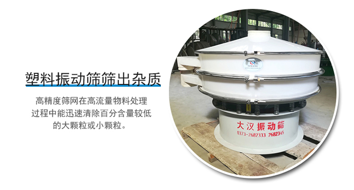 塑料振動篩也叫聚丙烯振動篩,塑料振動篩主要是為了解決篩分物料與金屬接觸而產生化學反應的問題。聚丙烯振動篩:從篩框、篩網和清網裝置完全采用非金屬材料,完全排除了一些特殊物料與金屬接觸會產生化學反應的問題。