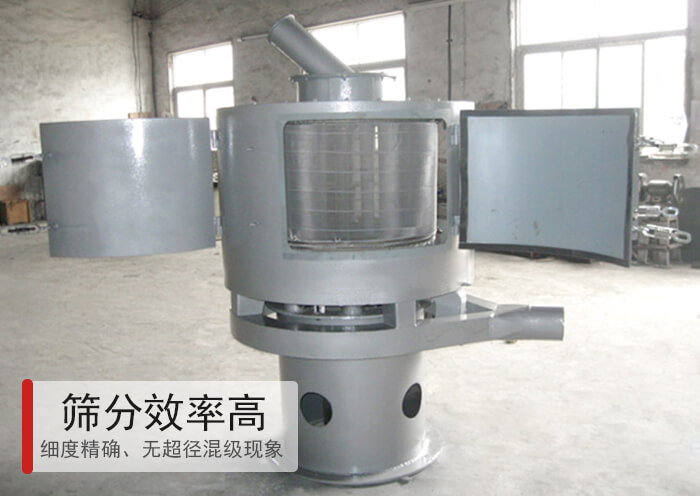 氣流篩篩分效率高、產量大,細度、無超徑混級現象,篩網立裝不荷重、使用壽命長,適應細度范圍廣,全封閉結構,無粉塵溢散,噪音小能耗低、可連續作業,維修方便。