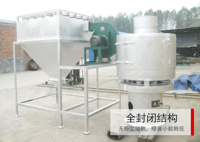 微細粉物料經進料斗流入進料口,立即擴散并與空氣混合成霧狀,經旋轉風輪的作用,呈旋風狀噴射過網,過網后的細粉經振動輸送進入或直接落入負壓循環風道,在引風機的作用下,氣體與細粉全部進入沉降室,成品細粉沉降后由下部的排料絞龍排出,帶有少量料粉塵的氣體大部進入除塵布袋,經凈化后排出袋外,還有一小部分,由回風管進入篩體下的環形循環風道,再經引風機進入沉降室進行二次分離。