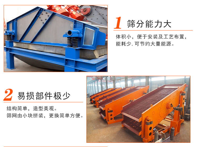 礦用振動(dòng)篩又叫礦用重型振動(dòng)篩,它是大漢公司自行研制的一種新型、高效的篩分設(shè)備,其篩箱運(yùn)行軌跡近乎為直線(xiàn),主要用于大塊狀物料及中小顆粒物料的篩分作業(yè)。該機(jī)采用新型振動(dòng)電機(jī)或激振器作振動(dòng)源,橡膠彈簧支撐并隔振,處理量大、篩分效率高、篩網(wǎng)更換方便、安裝及維修簡(jiǎn)便。