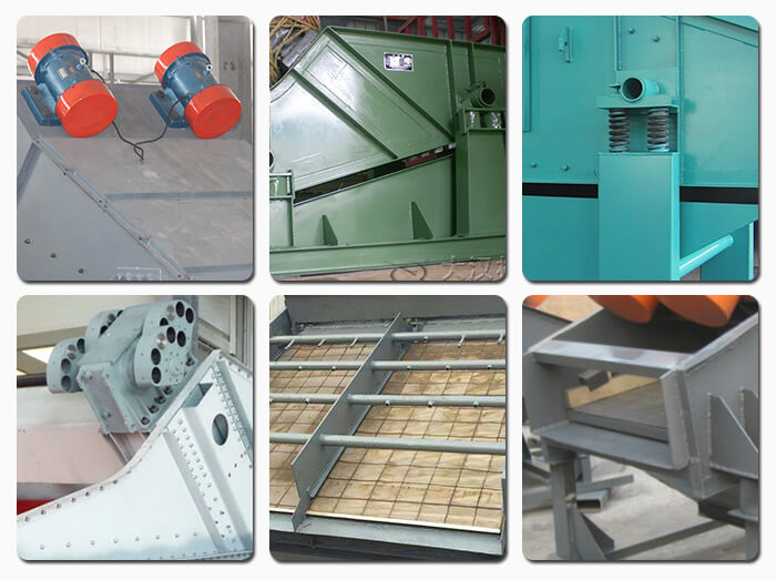 ZSG礦用振動(dòng)篩由振動(dòng)源、篩體、篩網(wǎng)、減振裝置和底拖組成,篩機(jī)側(cè)板采用優(yōu)質(zhì)鋼板制作而成,側(cè)板與橫梁、激振器底座采用高強(qiáng)度螺栓或環(huán)槽鉚釘連接,結(jié)構(gòu)合理,堅(jiān)固耐用.