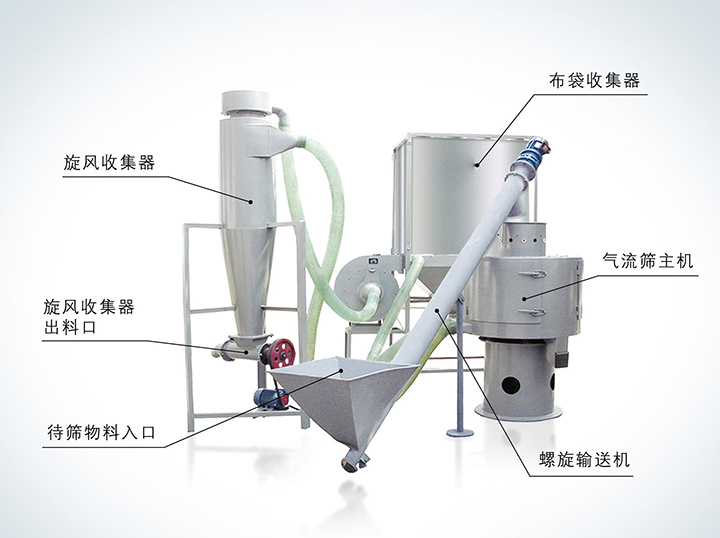3. 風機系統:包括風機和管道,產生氣流并控制篩分過程。