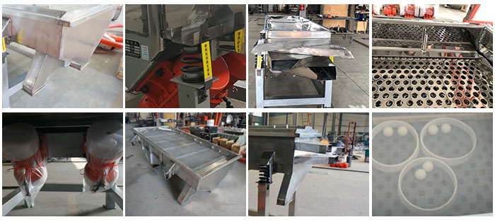 不銹鋼直線篩主要由篩箱、篩框、篩網、振動電機、電機臺座、減振彈簧、支架等組成。
